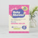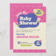 Celebra la alegría de una nueva llegada con esta adorable invitación a una ducha de bebé rosa. Con un diseño lúdico, fuentes audaces y acentos florales, es ideal para un evento divertido y acogedor en honor de la futura madre. Detalles: Alegre fondo de tablero de ajedrez rosa y morado Audaz título "Baby Shower" con flores decorativas campos de Personalizable para honores, fecha, hora y ubicación Perfecto para niñas o canapés temas de ducha de bebé Excelente para uso digital o impreso