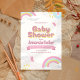 Celebre un nuevo comienzo alegre con esta adorable invitación a la ducha de bebé, diseñada con arcos pastel, nubes esponjosas y huellas de bebé juguetones. La paleta de colores suaves y el diseño caprichoso hacen que sea ideal para las duchas o fiestas de niños neutros en cuanto a género, llenas de diversión y amor. Características: Gráficos lúdicos de arcoiris y nube Grabación rosa y amarilla con un efecto de sombra de estilo 3D Nombre honorable prominente y detalles del evento Adecuados tanto para texto de Personalizable impreso como digital para fecha, hora y ubicación