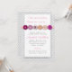 Diseño de invitación Baby Shower "Cute as a Button" con borde de cheurón gris y acentos rosados.