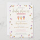 Esta invitación impresa con la temática de helados en el anverso es perfecta para los chicas que duchan en cualquier época del año. Incluye puntos de polka rosados, púrpura, dorados y purpurinas y helados.