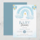 Invitación a Baby Shower con el arcoiris azul