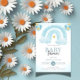 Rellene su celebración con esta invitación Baby Shower Blue Rainbow, que incluye arcos de color suave, nubes esponjosas, estrellas doradas y globos flotantes. Este diseño alegre y moderno es ideal para las duchas de niños o para cualquier fiesta con temática de nube y arcoiris de ensueño. Perfecto para: chaquetas para bebés o para bebés neutros en cuanto a género Higiene del arcoiris o duchas para bebés celestiales Estética del fiesta suave, pastel o acuarela