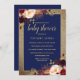 Invitación a Baby Shower con flores de borgoña de