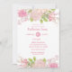 La invitación floral rosa y crema tiene hermosas flores y vegetación. Cambie la forma y el peso de las tarjetas y agregue los detalles de su fiesta. Mamá para ser estará encantada con esta encantadora invitación.