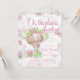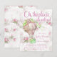 Invitaciones a baby shower con globo aerostático con un dulce globo aerostático floral rosa vintage en una nube y fondo de rosa vintage. Esta hermosa invitación a baby shower con globo aerostático vintage shabby chic se personaliza fácilmente para su evento simplemente agregando sus datos.