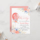 La invitación a la ducha para bebés incluye un globo rosa con flores y una ducha para bebés. Estas invitaciones a la ducha de bebé se personalizan fácilmente para tu evento simplemente añadiendo tus detalles.
