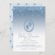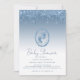 Celebre con estilo con esta invitación impresa a la ducha de bebé que incluye un chismoso goteo de purpurina azul y un pequeño emblema de pies de bebé. El suave fondo azul ombré aporta un toque moderno, mientras que el patrón de los pasadores de seguridad purpurinas en la parte posterior completa el aspecto. Completamente personalizable con los detalles de su evento, esta invitación es perfecta para un niño con ducha de bebé o una celebración con temática azul brillante.