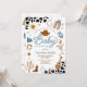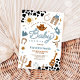 Ensilla para una divertida celebración con esta invitación de baby shower con tema western, perfecta para homenajear a una futura mamá especial. Con sombreros de vaquero, botas, lazos, cactus y acentos de estampado de vaca rústicos, este diseño captura el encanto del Salvaje Oeste. La disposición elegante y los detalles juguetones la hacen ideal para reuniones inspiradas en el campo, baby showers con tema de rodeo o fiestas rústicas en el granero. Personaliza con los detalles de tu evento para crear un recuerdo único que tus invitados amarán.
