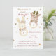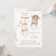 "Una encantadora ducha de bebé con un suave diseño de colores pastel con un lindo conejito y lustre de venado. La elegante tipografía anuncia la celebración de chicas gemelos, creando un ambiente cálido y alegre. Perfecto para un dulce e inolvidable evento de ducha de bebé."