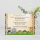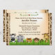 Invitación a la selva Baby Shower con un elefante, cebra, tigre, mono y jirafa. El fondo es un tema de jirafa. Personalizar con los detalles de la ducha.