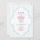 Bienvenido a tu pequeña con elegancia y encanto usando esta invitación a la ducha bebé en Bloom. Diseñada con suaves flores color de agua rosado dispuestas en un clásico jarrón azul, fondo de rayas azul claro y tipografía refinada, esta invitación aporta una belleza intemporal a tu celebración. Perfecto para duchas primaverales elegantes o de temática jardín.
