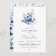 Una invitación a bañarse en una ducha de flores azules de estilo minimalista con un ramo de flores azules y un patrón de espalda. Puede personalizar esta invitación con sus propios detalles en la sección "Personalizar esta plantilla".