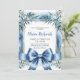 La Baby Shower Invitation de Blue Ribbon Chinoiserie celebra un futuro especial con esta elegante Invitación Baby Shower de la Cinta Azul. Con un delicado follaje acuático, un lujoso arco de satén y un refinado marco dorado, este diseño combina la sofisticación moderna con un encanto intemporal. La suave paleta azul es perfecta para un niño con ducha o para un tema neutro y elegante. Con un personalizable sencillo con los detalles del evento, esta invitación le da un toque refinado a cualquier celebración de la ducha de bebé. Una forma preciosa y memorable de invitar a los huéspedes con estilo.