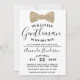 Este Gentleman Baby Shower Invitation incluye una corbata de arco Purpurina Faux Gold. Esta invitación es perfecta para cualquier hombre pequeño, caballero o ducha de bebé con corbata de arco. El diseño elegante es perfecto para marcar el tono para una ocasión de corbata negra.