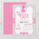 Esta invitación a la ducha para bebés tiene un patrón de chevron gris, un motivo de polka puntif rosa y blanco, y un adorable cachorro rosa con un arco de polka blanco y gris en la oreja. Sus huéspedes se enamorarán de estas invitaciones 100% TOTALMENTE personalizable para la ducha de bebé!
