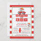 Moderna y linda ducha de bebé con un camión de bomberos rojo con un dulce perro cachorro dálmata sobre fondo de rayas rojas y blancas con acento hidrante. Invierta nuestra invitación para ver la coincidencia de nuevo para un toque especial. Invitación perfecta para un bombero/invitación a ducha de bebé con temática de camión
