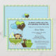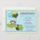 Adorable invitación de baby shower de mono en tonos azul, verde y marrón, perfecta para un NIÑO...mono bebé adorable en un carruaje.