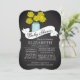 Invitación de Mason Jar Baby Shower a la moda moderna Chalkboard con un cartel de la cinta contemporánea con un guión elegante y coloridas mamáes amarillas para una ducha de bebé neutra en función del género para una niña o un niño. Un poco de encanto vintage con una moderna ducha de bebé chica con estilo invitan con textos tipográficos. Una perfecta invitación para una ducha de bebé en el jardín, una ducha de bebé en primavera o una ducha de bebé en verano.