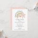 Moderna y adorable, color boho, arcoiris pastel, acuarela de color bebe, invitación a un chica; simple y dulce, con un pequeño centro de corazón rosado y tonos rosa, azul y mostaza. Colores suaves y mullidos, rosa sucio en la parte posterior de la tarjeta. Estilo moderno y caprichoso.