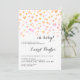 Esta preciosa ducha de bebé invita a los pequeños corazones acuarelas pintados a mano que caen en un mar de rosados y oro rosas, con un elegante guión negro y letras en serif anunciando los detalles de la ducha. Obra de arte original de Colleen Michele.