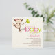 Comience su ducha de bebé safari con nuestra dulce invitación a la ducha de mono selva. Nuestra invitación a la ducha de mono cuenta con el mono más dulce con una flor girando sobre una rama de árbol colocada en un fondo de rayas beige con un mono coordinando hacia atrás. Visite nuestra tienda para ver nuestras tarjetas de agradecimiento, franqueo y pegatinas. ©Petit Tatti