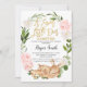 Chica Floral Wreath Deer Baby Shower Invitation Sweet pink, white and green wreath invitación a una pequeña niña a bañarse con un venado. Este diseño es una forma encantadora de invitar a los huéspedes a una pequeña ducha de chica con temática de ciervo. Cuenta con un falso título de caligrafía de Relieve metalizado de oro, corona floral y garbanzo y flor.