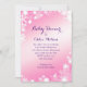Bonitos con copos de nieve, en diferentes tonos rosa y blanco, sobre un fondo acuático decoran esta señorial ducha de bebé de invierno.