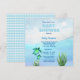Gran invitación para una ducha de bebé para niños. La invitación tiene dos tortugas, agua azul, coral y conchas marinas. Personalizar con los detalles de su fiesta para una invitación de buen calibre.
