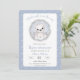 Pequeña y moderna invitación a la ducha de bebé de invierno azul con un lindo oso polar bebé y las pequeñas estrellas. Invitación a la ducha de bebé, plantilla totalmente editable, personaliza fácilmente el texto. - Kate Eden Art