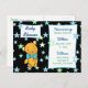 Adorables estrellas azules, verdes y negras y oso de peluche con corbata de arco Baby Shower Invitación postal. ¡Una manera rápida y barata, pero adorablemente más cómoda de invitar a la gente a tu ducha de bebé con temática de osito de peluche! Sólo personaliza esta postal añadiendo información a tu fiesta en el área de personalizar!