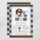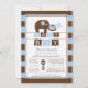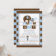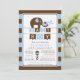 Invitación moderna a una ducha de bebé con elefante de elefante de elefante con su bebé elefante adornada con un fondo de rayas azules y marrones oscuros con acento sonoro y pancartas inclinadas. Dé la vuelta a la ducha de bebé de nuestros niños invitamos a ver la parte posterior correspondiente para un toque especial. Perfecto para una ducha infantil con temática de elefante.