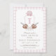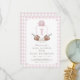 ¡Una manera deportiva y dulce de celebrar! Esta invitación a bañarse en una ducha de bebé de béisbol rosa tiene un escudo de adormidera, bates de béisbol y suaves tonos rosas, perfecto para dar la bienvenida a una niña con encanto y elegancia vintage.