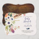 Flores y plumas de acuarela pintadas a mano adornan esta invitación de Engagement, sencilla y elegante, para esa pareja amante de la naturaleza. Invertir en grano de madera oscuro.
