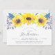 La invitación a la ducha floral de moda campestre para bebés cuenta con un borde superior de girasoles acuáticos, pequeños brotes azul marino y follaje verde. Personalice los detalles de su ducha de bebé con letras escritas a mano y tradicionales letras en serif. Las invitaciones a la ducha de bebé neutra de género se invitan al color azul del puerto rico.