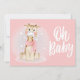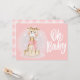 Un fondo color coral rosado con una tierna jirafa con una bufanda. Personalizar con los datos de su fiesta.