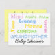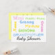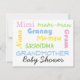 La abuela también necesita una ducha de bebé, especialmente si quiere cuidar al bebé en el camino. Muchos nombres para abuelas incluidos en la parte delantera de la tarjeta.