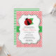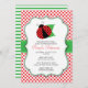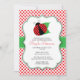 Invitación a Baby Shower por fallos, seleccione el botón personalizar para introducir el texto de la ducha de bebé en los campos de plantilla. Invitación presenta una imagen de clip de mariquita con colores negro, rojo y verde.