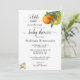 Ducha de bebé no de género con un motivo de Naranja y naranja. Estilo sencillo adornado con opciones Caligrafía añadidas al texto. Naranja claro inverso con hojas y flor.