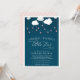 Nuestra dulce invitación a la ducha de bebé estrellada tiene una hilera de estrellas rosas que cuelgan de las esponjosas nubes blancas, en un fondo azul marino del cielo nocturno. "Twinkle, twinkle little star" aparece debajo de bloques blancos y letras de guiones. Personalice la redacción de la invitación a la ducha para bebés utilizando los campos de plantilla proporcionados. Las invitaciones cambian a rayas rosa pastel y blancas.