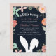 En el camino, los huéspedes podrán disfrutar de una agradable ducha con temática primaveral, con un amplio borde floral y una silueta blanca de orejas conejadas con un rico fondo azul marino.