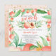 El melocotón dulce está en camino para la ducha de bebé con un marco de melocotón y hojas verdes adornado con un purpurina repartido en oro. Visite nuestra tienda para ver nuestra colección de diseño de melocotón dulce.