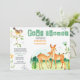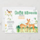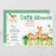 Invitación con tema de ciervos con dos ciervos. Adorable para la Invitación de Baby Shower para Niños. El fondo de la invitación es verde con puntos blancos. Personalizar con los detalles de la ducha usando nuestro sencillo patrón.