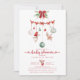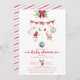 Celebre la temporada y una nueva llegada con esta invitación a los Navidades festivos a la ducha de bebé. El diseño se compone de un encantador móvil de vacaciones adornado con Santa, renos, ornamentos y arcos, todo ello unido a un toque de alegría roja y verde. El elegante guión rojo resalta los detalles del evento, mientras que el soporte de rayas de caramelo de caramelo agrega un divertido destello de vacaciones. Perfecto para duchas de invierno, rociadas o reuniones de vacaciones en honor de la futura madre.