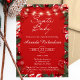Celebra tu pequeño paquete de alegría con esta invitación a la ducha de bebé con temas de Navidades de Santa Bebé. Con un fondo rojo vibrante, un guión blanco elegante, exuberantes ramos de pino, dulces y luces de cuerdas, es la manera perfecta de invitar a los invitados a rendir homenaje a la futura madre durante las vacaciones. Ideal para las duchas de invierno o diciembre. Personalizar fácilmente todo el texto para los detalles del evento.