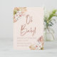 ¡Celebren que la mamá esté con esta invitación de boho pampas a la ducha de bebé! La hierba de pampas y un delicado marco floral y de hojas de palma le dan un toque rústico y sofisticado, perfecto para su revelación de género o su ducha de bebé. El esquema de color neutro de beige, oro, blanco y rosa pálido ayuda a hacer de esto una invitación ideal para fiestas y revelaciones neutrales de género. La combinación de texto cursivo y tradicional une el aspecto de un estilo único y vintage.