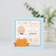 Invitación para baby shower de calabacita con adorable bebé sentado en una calabaza sobre un fondo de lunares azules y marrones. Puedes personalizar fácilmente estas invitaciones para tu evento simplemente agregando tus datos.