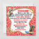 ¡Sí! Celebra el estilo de vaquero con esta súper adorable invitación a la fiesta de Cowboy en Baby Shower con un ilustracion vintage de un lindo bebé vaquero con un gran gorra, bota de vaquero y tipografía divertida contra un fondo de bandana roja.