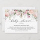 Las irresistibles rosas rosa pastel y las flores de jardín mezcladas con hojas y ramas de rayas forman el borde de esta peculiar acuarela floral, una ducha de bebé, perfecta para celebrar la llegada de una niña. Flores mezcladas delgadas en rosa y blanco se combinan con los rosas para agregar textura. Los modernos emparejamientos de tipos de letra añaden al atractivo general de este diseño personalizado. Personalice los detalles de la ducha para bebés.