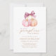 Celebra la doble alegría de tu ducha de bebé gemela con nuestra Invitación Baby Shower de los pequeños gemelos de calabaza. Este encantador diseño cuenta con dos calabazas que simbolizan a los gemelos chicas y niños, enclavados en una hermosa acuarela. Con tonos suaves de rosa, naranja, malva y violeta, la invitación capta la esencia del otoño, mientras que un arco de coqueta aporta un toque encantador. El guión elegante y los acentos dorados elevan la elegancia general, haciendo de esta invitación perfecta para una celebración con temática de otoño con detalles florales de flores silvestres y belleza intemporal.