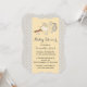 Elegante invitación a la ducha de bebé hecha en un amarillo dorado pálido, con un amarillo dorado en el tono de estrella gris claro, corriendo por ambos lados. Bonitos gráficos de una cigüeña volando con un paquete de bebés, decoran la parte superior de la invitación. Personalice el texto gris oscuro para su evento de ducha de bebé. Encantadora invitación que la futura madre apreciará.